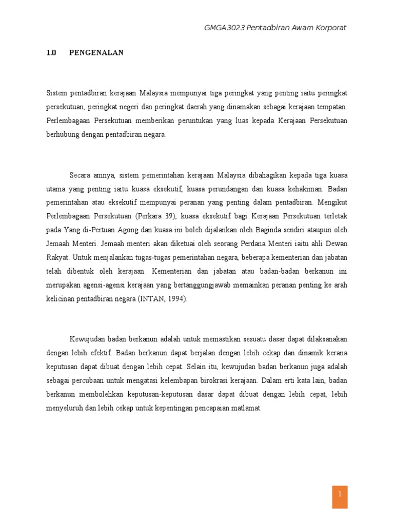 Persatuan badan badan berkanun. A jabatan perdana menteri. Badan badan tidak berkanun ialah syarikat syarikat kerajaan yang ditubuhkan di bawah akta syarikat 1965 akta 125. Badan badan berkanun lebih dikenali sebagai perbadanan yang ditubuhkan dengan tujuan untuk mengambil alih tugas dan tanggungjawab fungsi jabatan jabatan kerajaan tertentu yang telah lama ditubuhkan malaysia 1991.