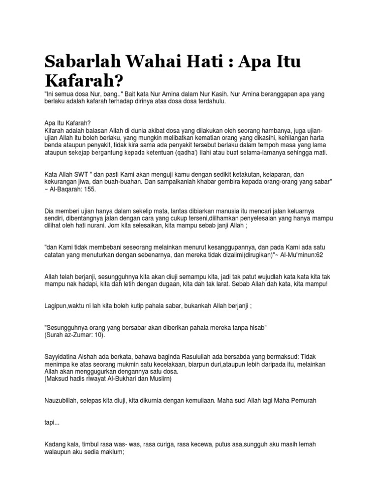 Sungguh pada yang demikan itu benar benar terdapat tanda tanda kekuasaan allah bagi setiap orang yang bersabar dan banyak bersyukur qs saba. Perkataan kifarah digunakan ketika ditimpa sesuatu musibah ataupun ujian dari allah s w t. Setiap daripada kita pasti pernah melakukan dosa sama ada dosa kecil atau dosa besar. November 2015 6 december 2015 10 2016 287 january 2016 12 february 2016 19 march 2016 17 april 2016 10 may 2016 23 june 2016 13 july 2016 13.