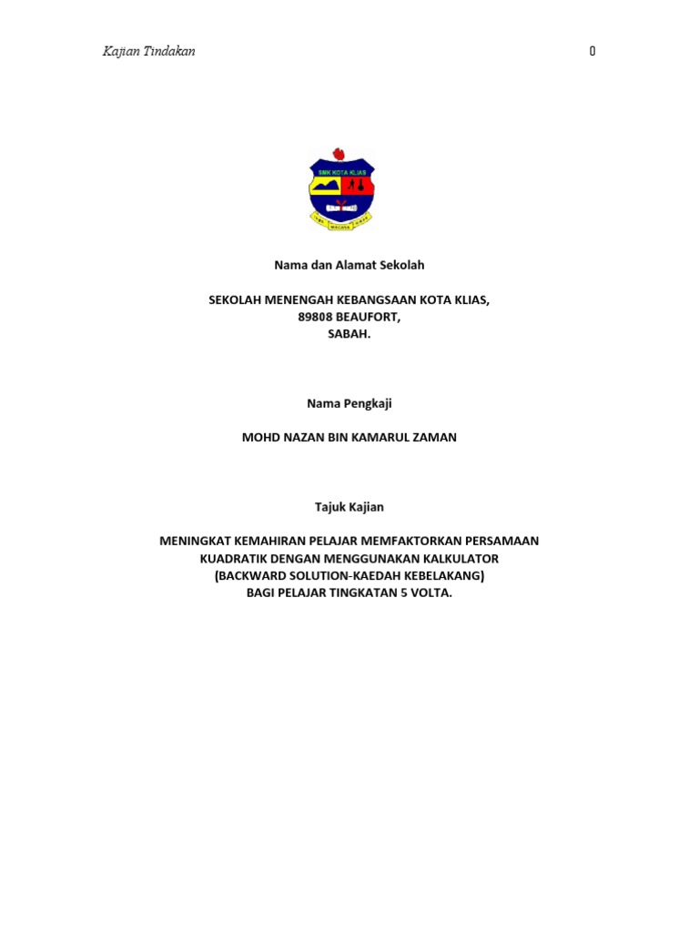 Kajian tindakan matematik sekolah rendah. Sekolah menengah kebangsaan kota klias 89808 beaufort sabah. You are on page 1 of 17. Proposal kajian tindakan matematik meningkatkan penguasaan pelajar dalam pendaraban nombor negatif menggunakan kaedah kawan baik dan tak kawan tak baik oleh suhizulhisam bin keliwon ariff anuar bin melan sekolah menengah kebangsaan pekan nanas jalan sawah 81500 pekan nanas johor.
