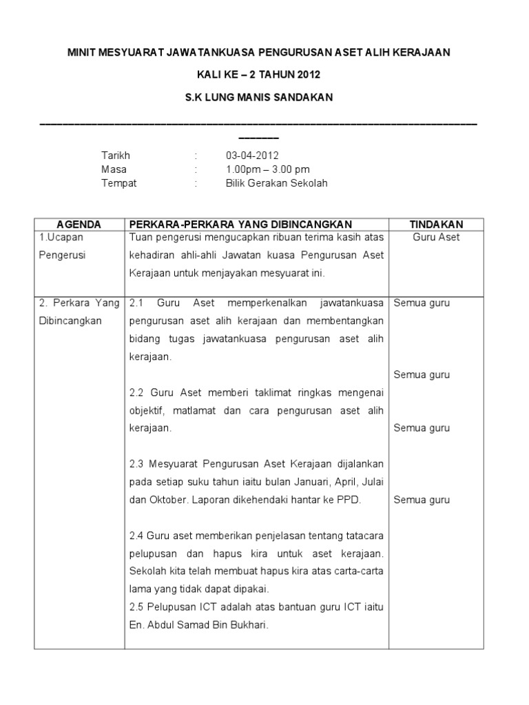1 8 2 menggalakkan supaya membawa sendiri komputer riba semasa pertandingan bagi melancarkan urusan. English español português français. Contoh minit curai format spsk pendidik2u curai sebenarnya tidaklah serumit minit mesyuarat ia lebih ringkas dan padat. Contoh minit mesyuarat minit mesyuarat merupakan satu laporan mengenai perkara atau hal yang dibincangkan dan diputuskan dalam sesuatu mesyuarat.