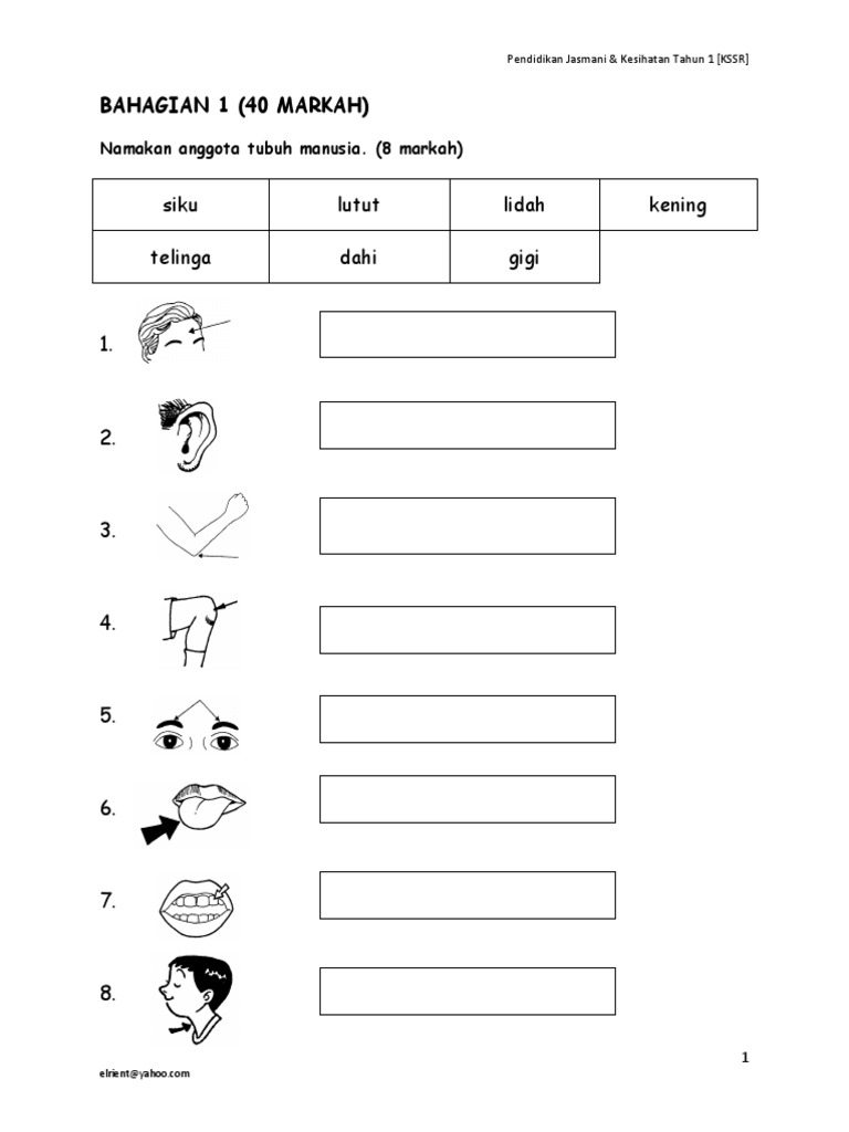 Contoh Soalan Pendidikan Kesihatan Tahun 1