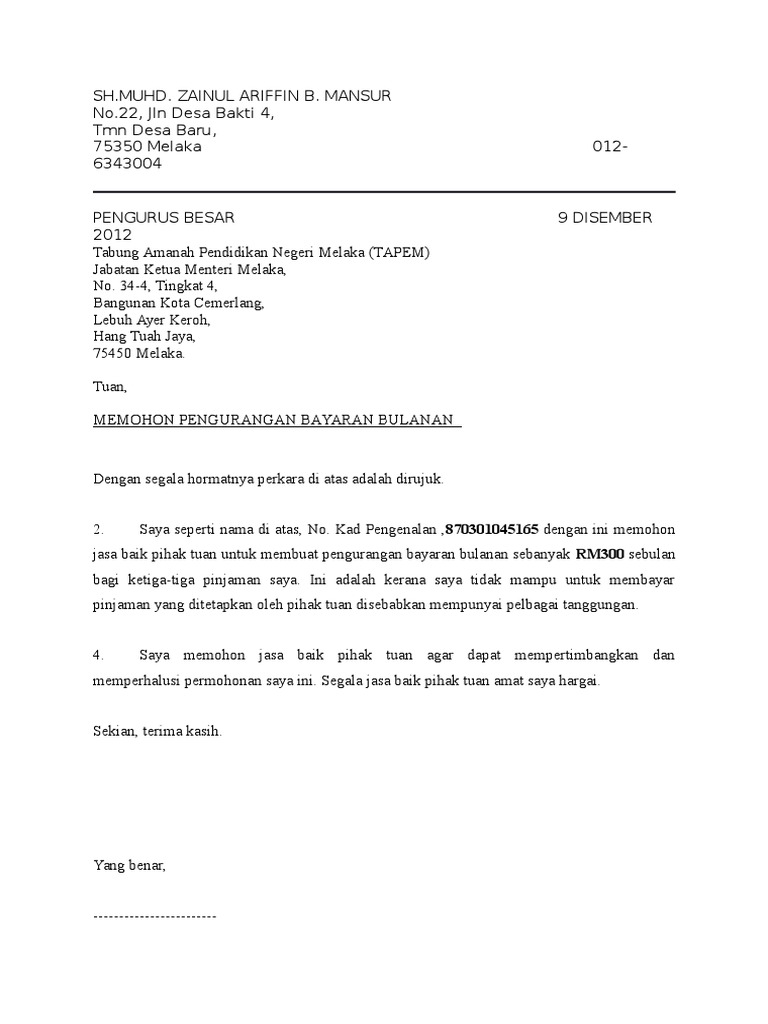 Anda mungkin antara mereka yang mempunyai masalah untuk membayar hutang bulanan kerana mengalami kesukaran disebabkan pelbagai situasi dan faktor lain. Contoh surat rayuan pengurangan bayaran anda mungkin antara meraka yang mempunyai masalah untuk membayar hutang kerana mengalami kesukaran disebabkan pelbagai situasi dan faktor lain. Kepala smp 77 yogyakarta di tempat. Contoh surat rayuan pengurangan bayaran faedah bagi pembelian rumah baru by nadia aziz.