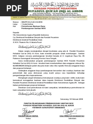 Contoh Surat Permohonan Bantuan Dana Pembangunan Pesantren