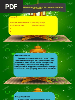 Dari pengertian tersebut memiliki arti masing masing istilah terkait satu denga yang lain. Pengertian dan hubungan antara iman islam dan ihsan suatu ketika malaikat jibril dalam rupa seorang manusia datang kpd rasulullah shallallahu alaihi wa sallam para shahabat utk mengajarkan tentang pokok pokok ajaran agama yaitu islam iman ihsan. Menggali sumber teologis historis dan filosofis tentang iman islam dan ihsan sebagai pilar agama islam berdasarkan hadis yang diriwayatkan umar bin khatab r a diatas kaum muslimin menetapkan adanya tiga unsur penting dalam agama islam yakni iman islam dam ihsan sebagai kesatuan yang utuh. Setiap pemeluk islam mengetahui dengan pasti bahwa islam tidak absah tanpa iman dan iman tidak sempurna tanpa ihsan.