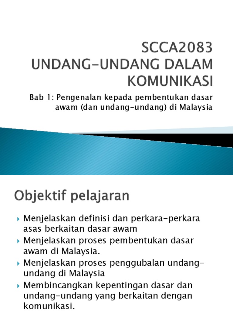 1 0 pengenalan 1 1 definisi undang undang ahli ahli falsafah undang undang seperti aristolte jj rousseau dan finnis mendefinasikan undang undang adalah suatu peraturan peraturan yang membolehkan dan menegah sesuatu kelakuan atau tindakan. Seksyen 3 dan seksyen 5 akta undang undang sivil 1956. Di bawah doktrin pembahagian kuasa fungsi penggubalan undang undang terletak secara utamanya pada legislatif akan tetapi terdapat juga situasi di mana perundangan digubal oleh cara lain terutama apabila undang undang perlembagaan digubal cara lain termasuk melalui pungutan suara sesetengah. Justeru itu pembentukan perlembagaan akan mengekalkan identiti negara bangsa malaysia kerana ia telah mencorakkan sistem pentadbiran dan perjalanan undang undang negara.