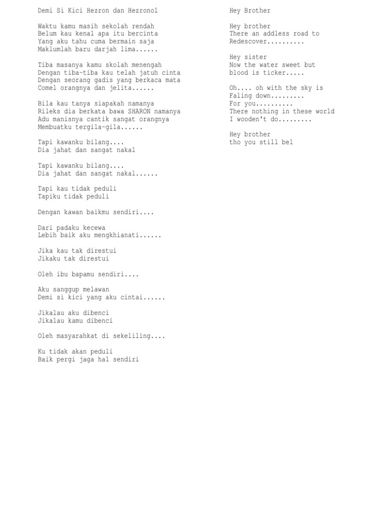 Em oleh ibu bapamu sendiri f aku sanggup merayu g c demi si kici yang aku cintai g c jikalau kamu dibenci c jikalau aku dibenci.