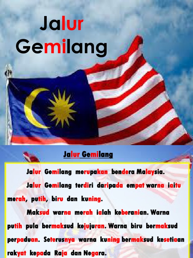 Maksud warna bendera malaysia in english. Dan namanya telah diubah kepada jalur gemilang pada tahun 1997 sempena hari kemerdekaan negara ke 40. Log in sign up. Selain itu ia bertujuan untuk mengangkat identiti bendera dan menyeru rakyat malaysia untuk mengibarkan bendera tersebut dengan rasa megah dan semangat patriotik dalam kalangan rakyat. Press question mark to learn the rest of the keyboard shortcuts.