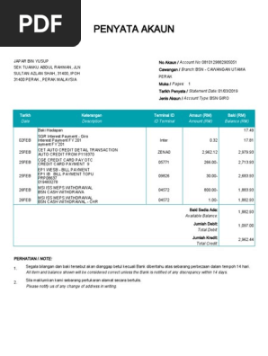 Nombor Akaun Contoh Penyata Akaun Bank Bsn