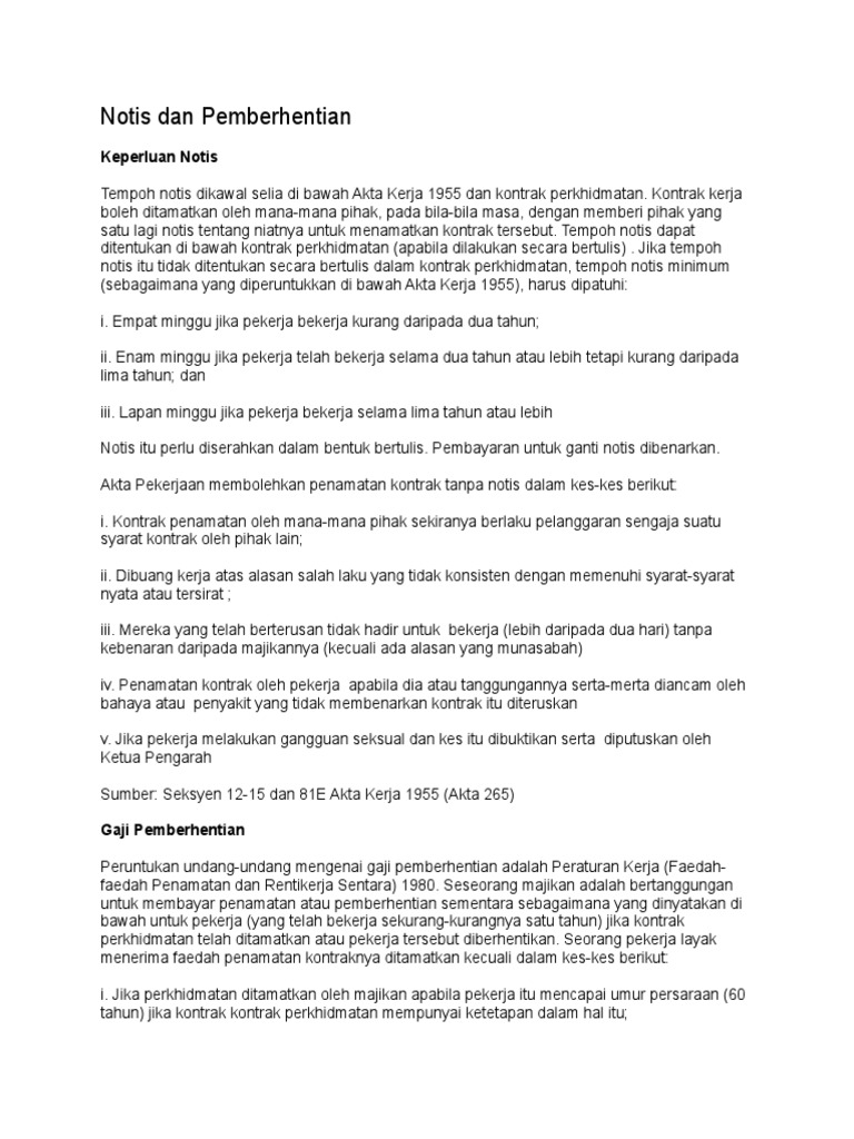 Periksa syarat dan ketentuan insentif tambahan itu dengan jelas di dalam kontrak kerja. Contoh surat diberhentikan kerja oleh majikan. Bagi anda yang menepati posisi personalia di suatu perusahaan surat pemberhentian kerja bukan termasuk surat yang asing. Jika pekerja memberi notis berhenti kerja maka majikan punyai hak untuk melepaskan pekerja tanpa notis jika dia mahu.
