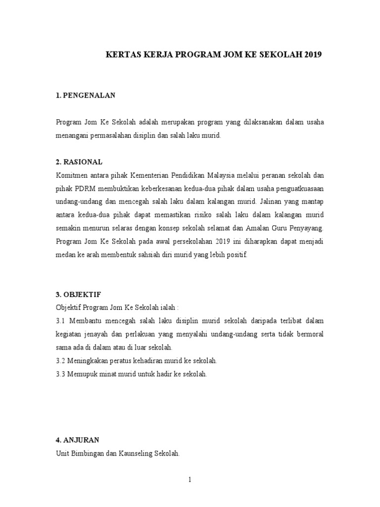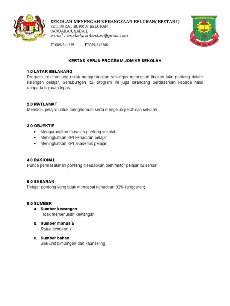 2 0 objektif 2 1 meningkatkan peratus kehadiran pelajar ke tahap 100 peratus. Objektif program jom ke sekolah ialah. Bagi yang ingin mendapatkan contoh laporan program jom ke sekolah bolehlah muat turun di sini. Mengelakkan berlakunya gejala negatif.