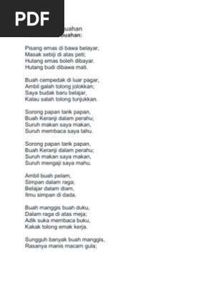 Sorong papan tarik papan buah keranji dalam perahu nak duduk periksa bulan depan banyak benda masih tak tahu. Suruh makan saya makan. Ni la buah keranji ooooo. Sorong papan tarik papan buah keranji dalam perahu suruh makan dia makan.