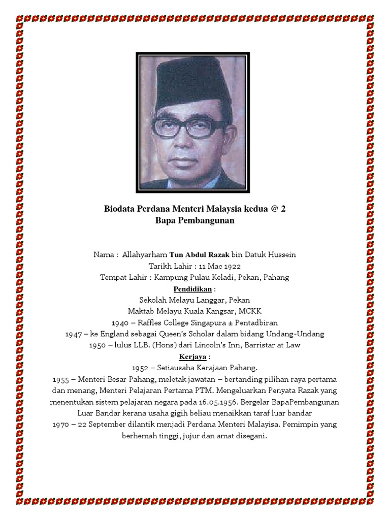 Biodata perdana menteri malaysia 1 2 3 4 5 6 7 8 berikut disediakan senarai senarai biodata perdana menteri malaysia 1 2 3 4 5 6 7 8 bermula dengan tunku abdul rahman putra alhaj sehingga mohd najib bin tun haji abdul razak turut disediakan dengan lebih maklumat lanjut disertakan disetiap bawah biodata pendek. Mahathir bin mohamad pm malaysia ke 7 tun dr. Tiada yang mustahil sebut sahaja mana seteru politik yang tidak berjaya ditumbangkan dari tunku abdul rahman tun hussein onn tengku razaleigh hamzah tun musa hitam datuk seri anwar ibrahim sehingga. Najib bin tun haji abdul razak 1953 perdana menteri malaysia keenam 3 april 2009 hingga 9 mei 2018.
