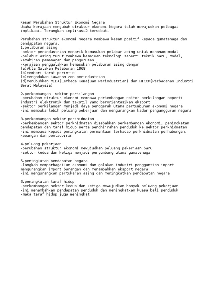 Perubahan struktur ini boleh berlaku sama ada dengan cara sengaja atau secara sendiri zulkifli 1992 3 4. Fokus tajuk ini adalah melihat kepada faktor pendorong tolak dan tarik dan kesan ke atas terutamanya kdnk dan guna tenaga. Situasi di malaysia gender shift and its implications for the malaysian economic structural change. Academia edu is a platform for academics to share research papers.