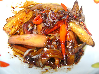 Dulu dulu sue tak pernah makan terung masak kicap tapi ada seorang kawan sama tempat kerja yang kerap masak masakan ini dan bawa ke tempat kerja untuk kami makan bersama sama. Terung yang lembut digoreng kena pula kicap lemak lemak manis dengan aroma bawang putih memang menyelerakan sedap juga meratah. Goreng terung hingga masak ketepikan. Resipi yang che nom kongsikan di entry in memang adalah resipi yang sangat mudah tapi cukup membuka selera iaitu terung goreng kicap bercili.