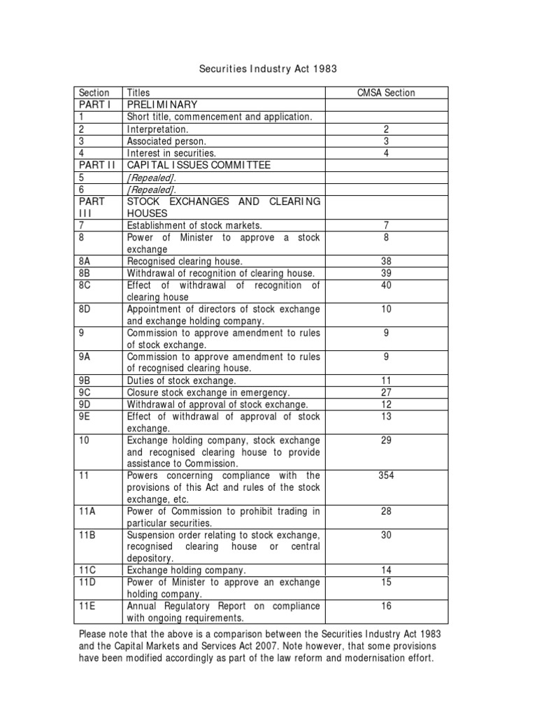 As at 20th july 2006 published. This act may be cited as the securities industry act. An act to amend laws relating to companies and securities assented to 8 december 1983 be it enacted by the queen and the senate and the house of representatives of the commonwealth of australia as follows. Securities industry act 1983 securities industry 1 laws of malaysia reprint act 280 securities industry act 1983 incorporating all amendments up to 1 january 2006 published by the commissioner of law revision malaysia under the authority of the revision of laws act 1968 in collaboration with percetakan nasional malaysia bhd 2006.