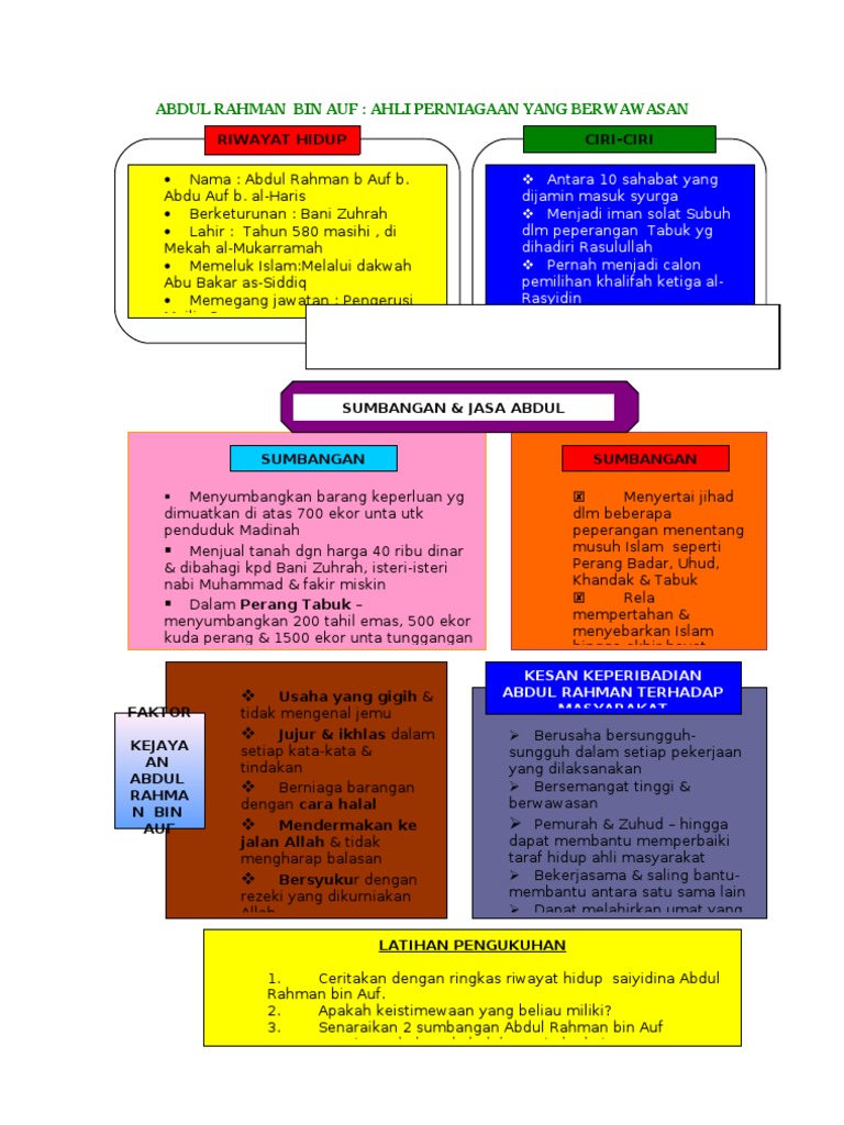 Sumbangan abdul rahman bin auf kepada islam. Di dalam buku rahsia jutawan islam abdul rahman bin auf terbitan pts beliau dianggarkan memiliki kekayaan bernilai rm 107 juta. Sedangkan contoh kisah kejayaan dan strategi usahawan terhebat abdul rahman bin auf jarang sangat pula saya kongsikan. Inilah salah satu julukan yang diberikan kepada sahabat nabi ini pada biografi dan kisah abdurrahman bin auf mungkin kebanyakan kita hanya mengenal beliau sebagai sahabat yang pandai berdagang dan mempunyai banyak harta berkat kejujurannya dalam berusaha. Syukur walau untung sedikit.
