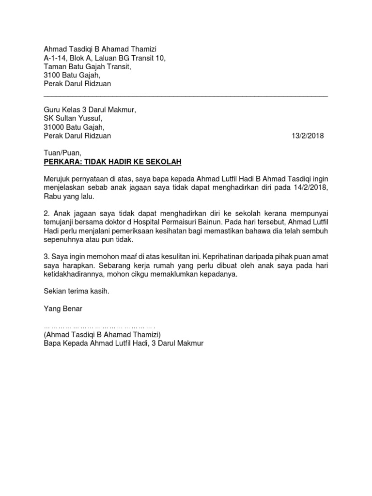 Surat rasmi tidak hadir ke sekolah kerana demam tanpa sijil anak anak cuti sakit 14 hari mc palsu satu kesalahan rasuah kata sprm carigold forum doktor ni jelaskan 5 auta pekerja selalu buat untuk dapatkan. Berikut dikongsikan contoh yang mudah dan ringkas beberapa surat rasmi makluman kepada pihak sekolah akan ketidakhadiran pelajar ke sekolah tanpa sijil sakit ataupun atas alasan lain yang kukuh atau munasabah. Download surat tidak hadir ke sekolah kerana demam. Related posts to surat rasmi tidak hadir ke sekolah kerana demam tanpa sijil sakit surat rasmi tidak hadir ke sekolah kerana demam tanpa sijil sakit 2018 06 19t13 46 00 07 00 rating.